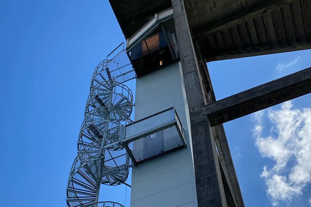 Hisstornet är totalt ca. 29 meter högt och består av ett rymdfackverk av stål som monterats på en bas av betong. Hisstornet är förankrat i berget med 8st GWS-Stag som har förspänts. Hisstornet är utrustat med 2st räddningsplattformer och en spiraltrappa har också monterats utmed hela tornets höjd.